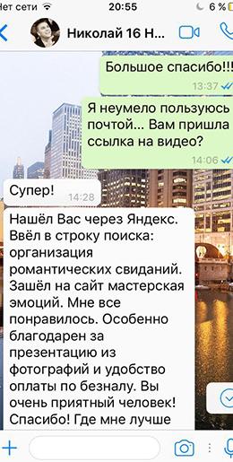 При организации предложений руки и сердца, романтических свиданий и сюрпризов в Москве это особенно важно, ведь компаний флористики, ресторанов, актеров, музыкантов и т. д. в Москве много, хороших из них мало, а на кону значимые, особые события наших клиентов.